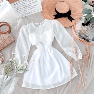 ĐẦM TRẮNG MIDI HỞ LƯNG NƠ SAU CỔ TRÒN