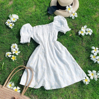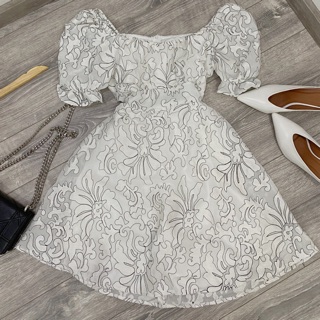 ĐẦM TRẮNG HOẠ TIẾT NỔI TAY PHỒNG NHẸ