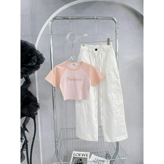 SET ÁO CROPTOP THÊU + QUẦN KEM SUÔNG HỘP (TH)