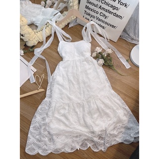 ĐẦM SÁT NÁCH MIDI GÂN VIỀN TRẮNG HỞ CUT OUT LƯNG (TH)