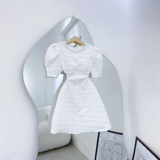 ĐẦM TRẮNG CHERRY ĐỎ NƠ NGỰC TAY BỒNG