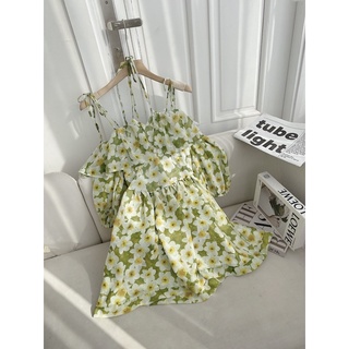 SET ĐẦM 2 DÂY HOA NHÍ CHUN LƯNG SAU + ÁO KHOÁC HỒNG (TH)