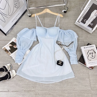ĐẦM BBD BẸT VAI THẮT EO 2 MÀU (TH)