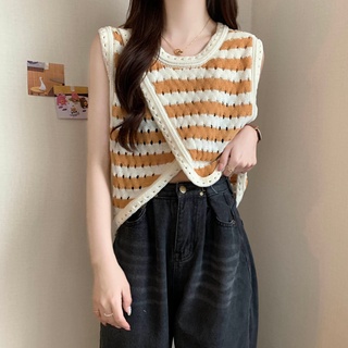 COZOK Áo Dệt Kim Sát Nách Trễ Vai Họa Tiết Kẻ Sọc Màu Tương Phản