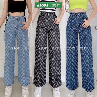 Quần Jean Ống Rộng AIORI Lưng Cao Họa Tiết NY Thời Trang Hàn Quốc_Mã E004