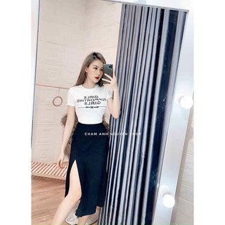 SET ÁO PHÔNG IN CHỮ TAY CỘC MIX CHÂN VÁY ĐUÔI CÁ DÁNG DÀI B145
