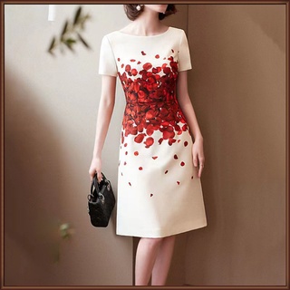 Đầm Chữ A Tay Ngắn Cổ Tròn In Họa Tiết Hoa Hồng Thời Trang Mùa Hè Cho Nữ
