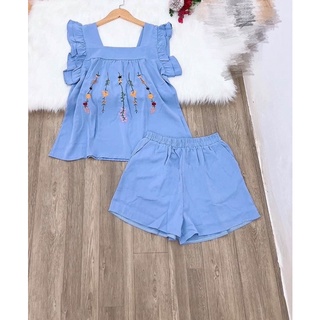 [3 size 46-70KG] SET bộ LỤA THÊU QUẦN ĐÙI ÁO CỔ VUÔNG BÈO VAI DỄ THƯƠNG MỊN MÁT thời trang