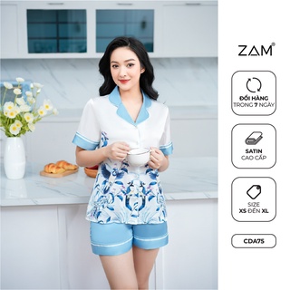 Bộ ngủ satin ZAM Luxury - CDA75 - áo ngắn tay quần đùi hoạ tiết