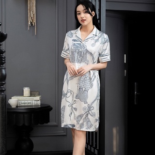 Bộ ngủ satin ZAM Luxury - CDA91 - áo ngắn tay quần đùi hoạ tiết
