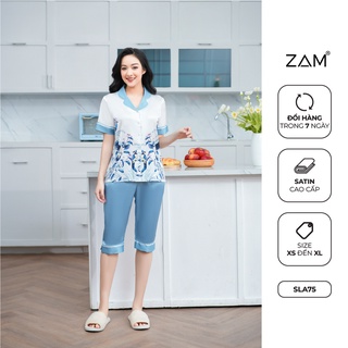 Bộ ngủ satin ZAM Luxury - SLA75 - áo ngắn tay quần lửng hoạ tiết