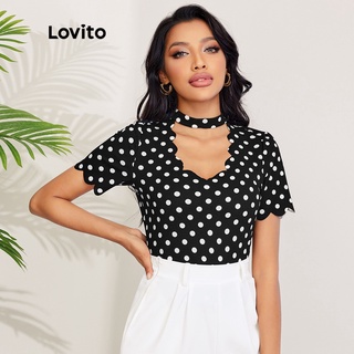 Áo thun Lovito thiết kế ren tương phản họa tiết chấm bi L27LD072 (màu đen)