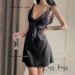 (M. 123) Váy ngủ sexy có đệm ngực phối ren lấp lánh Đầm mặc nhà cổ yếm gợi cảm quyến rũ