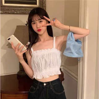 Áo Croptop 2 Dây Đũi Áo Dây Thun Nữ Viền Bèo 2 Màu trắng tím siêu hot phong cách Hàn Quốc Ailee
