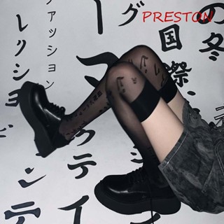 Vớ Lụa Đen Dài Qua Gối Mỏng Co Giãn In Chữ Phong Cách Hàn Quốc Cho Nữ