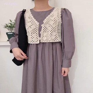 RALPH Áo Dệt Kim Cotton Mềm Mại Dáng Rộng Không Tay Hở Lỗ Họa Tiết Hoa Phong Cách Retro Hàn Quốc