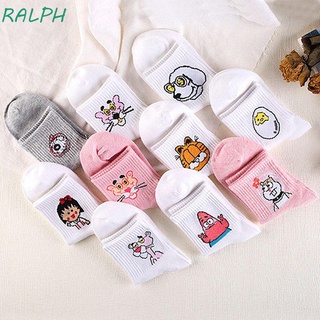 Vớ cotton cao đến mắt cá chân in họa tiết hoạt hình báo hồng đáng yêu chất lượng cao cho nữ