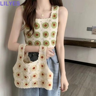 LILYES Áo Croptop Dệt Kim Không Tay Họa Tiết Hoa Phong Cách Bohemian Thời Trang Mùa Hè Hàn Quốc