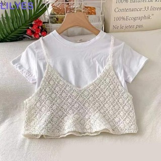 LILYES Áo Crop Top Hai Dây Đan Móc Họa Tiết Hoa Bằng Cotton Thời Trang Mùa Hè Cho Nữ
