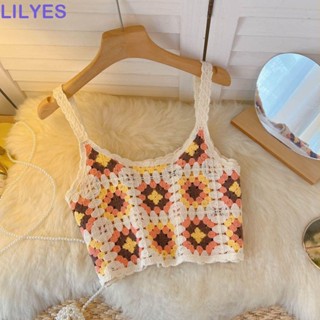 LILYES Áo Croptop Đan Móc Hoạ Tiết Hoa Nhiều Màu Sắc Phong Cách Bohomian