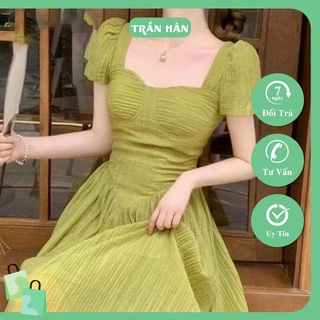 Váy thiết kế nữ cổ vuông tay bồng dáng dài thanh lịch nữ tínhI Trần Hân shop 3006952