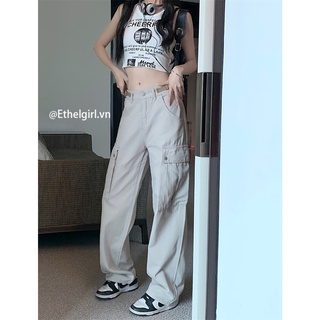 Ethelgirl Quần Ống Rộng Lưng Cao Phong Cách Mỹ Cho Nữ