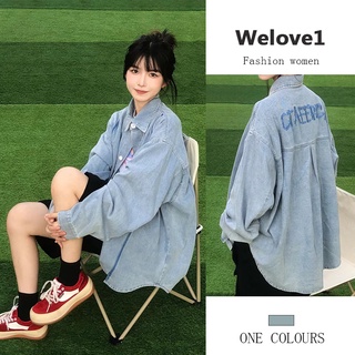 「 WELOVE1 」Áo Sơ Mi Chống Nắng Tay Dài Dáng Rộng Cổ Polo Màu Trơn Thời Trang Dành Cho Bạn Nữ