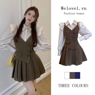 Set Áo Sơ Mi Và Chân Váy Xếp Ly Thời Trang Mùa Thu Chất Lượng Cao