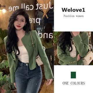 Áo Khoác Ngắn Màu Xanh Lá Phong Cách Hàn Quốc Thời Trang Mới Cho Nữ