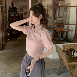 Áo Sơ Mi Tay Phồng Ngắn Cổ Vuông Màu Trơn Ngọt Ngào Thời Trang Cho Nữ
