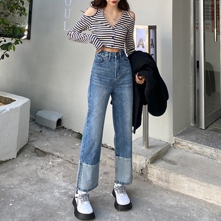 Quần jeans Nữ Lưng Cao Ống Rộng Thời Trang Hàn Quốc Cá Tính