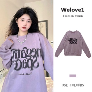 Áo sweater Cổ Tròn Dáng Rộng Màu Tím Phong Cách Mỹ Cổ Điển Thời Trang Cho Nữ