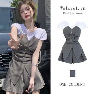 Set Áo Kiểu Xếp Ly Phối Quần Short Giả Hai Lớp Thời Trang Cá Tính Cho Nữ