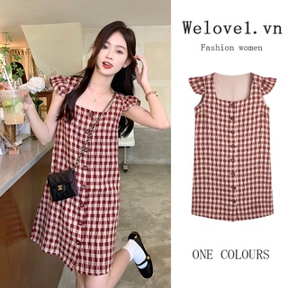 Đầm voan ngắn tay họa tiết ca rô xinh xắn đáng yêu hợp thời trang dành cho nữ