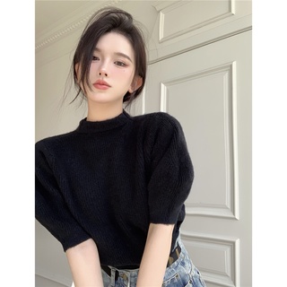 Áo Dệt Kim Tay Ngắn Cổ Cao Dáng Ôm Thời Trang Mùa Hè Xinh Xắn Cho Nữ