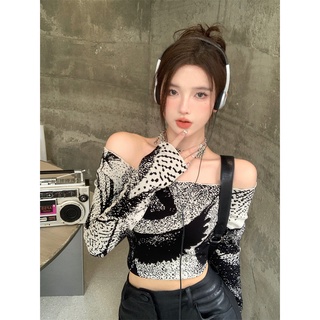 Áo sweater Dài Tay Trễ Vai Phối Hai Màu Đen Trắng Sành Điệu