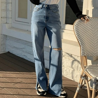 Q10|Quần jeans bò nữ ống rộng lưng cao rách gối hàn quốc basic dễ mặc đi học, đi chơi gd_order