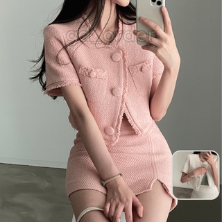 B40|Set bộ công sở sang trọng thanh lịch hàn quốc áo croptop cổ tròn kèm chân váy ngắn gd_order