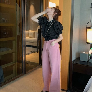 Áo Kiểu Tay Phồng Cổ Tròn Dáng Rộng Thiết Kế Đơn Giản Thời Trang Hàn Quốc Dễ Phối Đồ