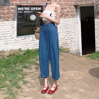 Quần jeans Dài Lưng Cao Ống Rộng Thời Trang Hàn Quốc Cho Nữ