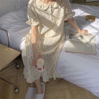 (Spot) 2022 Korean Princess Nightdress Doll Collar Fashion Home Clothes Long Print Pajamas