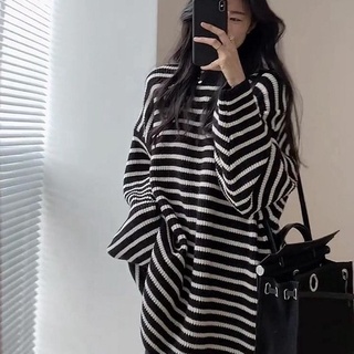 Áo sweater Dệt Kim Cổ Tròn Dáng Rộng Xẻ Tà Họa Tiết Kẻ Sọc Thời Trang Hàn Quốc 2022