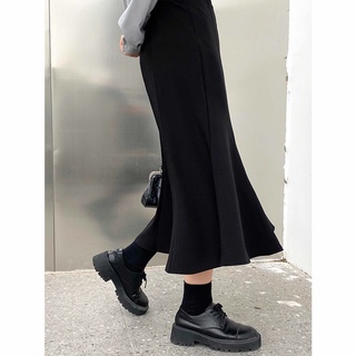 Chân Váy midi Chữ A Lưng Cao Viền Bèo Màu Đen Đơn Giản Phong Cách Hàn Quốc Thời Trang