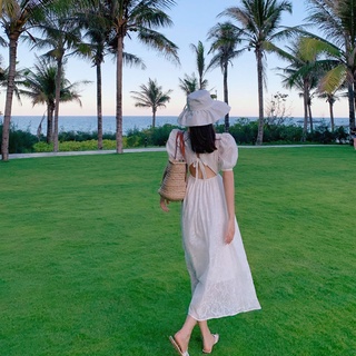 Đầm Cổ Vuông Tay Phồng Phối Nơ Phong Cách Hàn Quốc Thời Trang