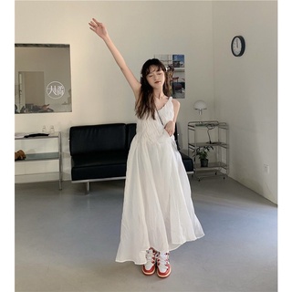 Đầm Chữ A Hai Dây Cổ Chữ V Màu Trắng Phong Cách retro Thời Trang Hàn Quốc