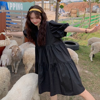Đầm Búp Bê Dáng Rộng Tay Phồng Màu Trơn Thời Trang Hàn Quốc 2022