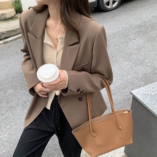 Áo Khoác Vest Dáng Rộng Màu Cà Phê Phong Cách Hàn Quốc Thời Trang Xuân Thu 2022 Cho Nữ