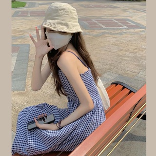 Đầm Hai Dây Họa Tiết Sọc Caro Phong Cách Hàn Quốc Thời Trang 2022 Cho Nữ