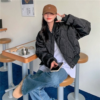 Áo khoác chần bông màu trơn phong cách retro Hàn Quốc