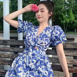 Áo Sơ Mi chiffon Dài Cổ Treo In Họa Tiết Hoa Thời Trang Mùa Hè Pháp 2023 Cho Nữ